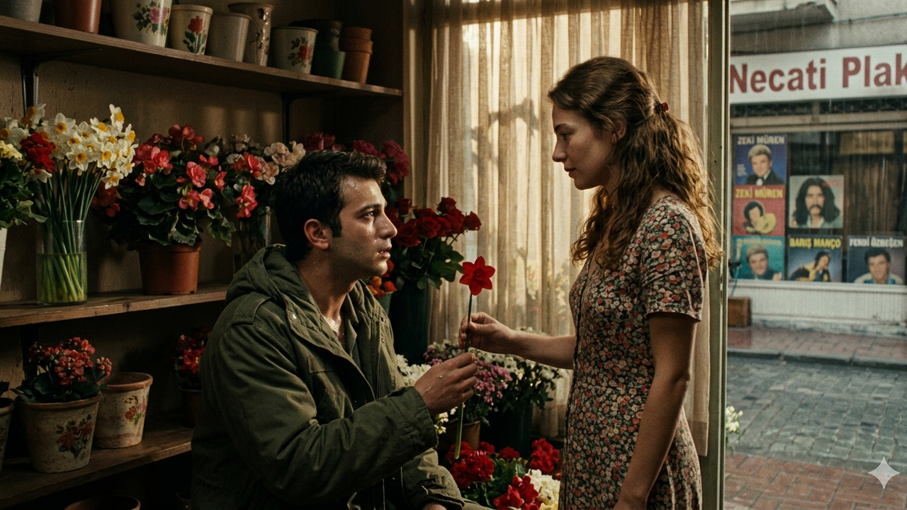 Can, arkasına bakmadan "Ege Rüzgârı"na daldı. Ece, elindeki fıskiyeyi yere düşürürken, genç adam kapıyı arkadan hızla kilitledi ve vitrindeki nergislerin üzerine asılı perdeleri indirdi.