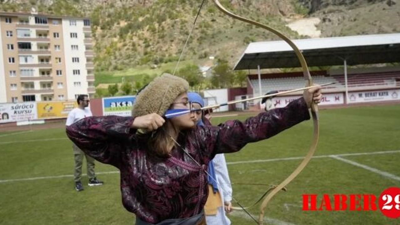 Gümüşhane'de Geleneksel Türk Okçuluğu Grup Müsabakaları kapsamında 350'ye yakın öğrenci geleneksel kıyafetlerle kıyasıya yarıştı.