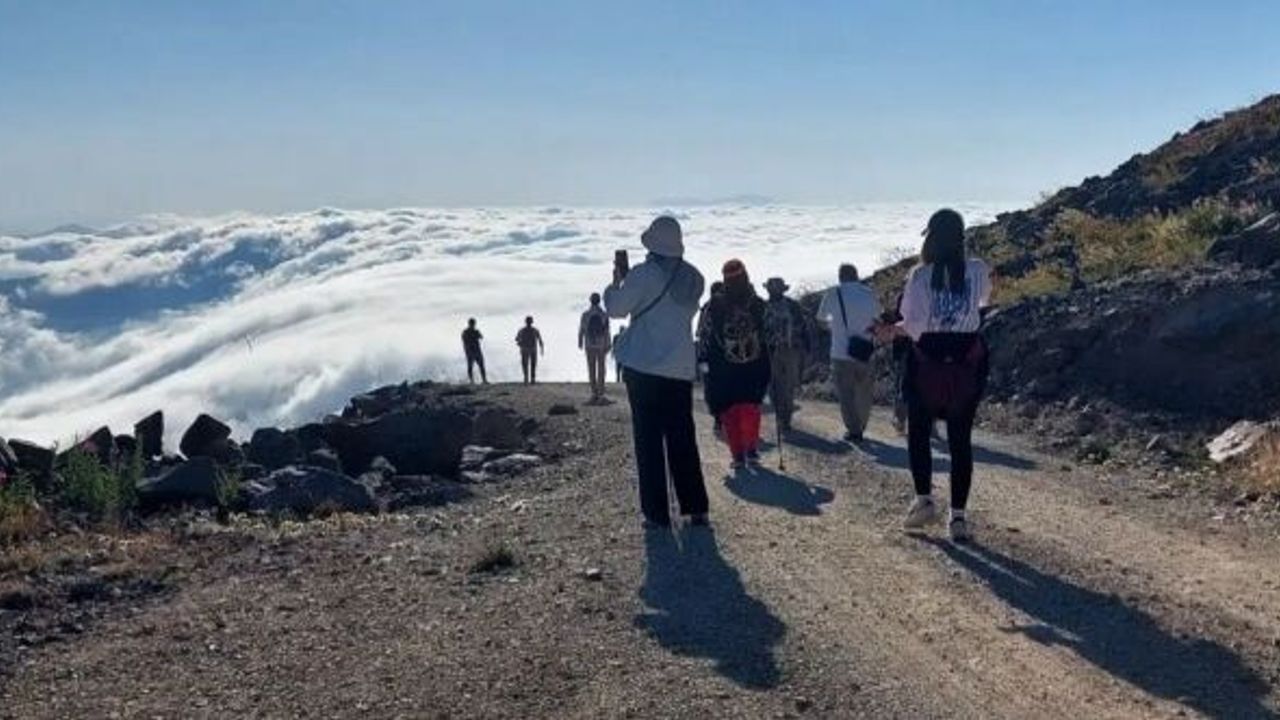 Daha sonra tekrar Şekersu Yaylası’na dönen sporcular, bu kez rotalarını Kırklar Mescidi’ne çevirdi. 3 bin 200 metrelik yükseklikte bulunan tarihi mescide yapılan tırmanış sırasında katılımcılar, sis denizinin oluşturduğu olağanüstü manzaraya tanıklık etti.