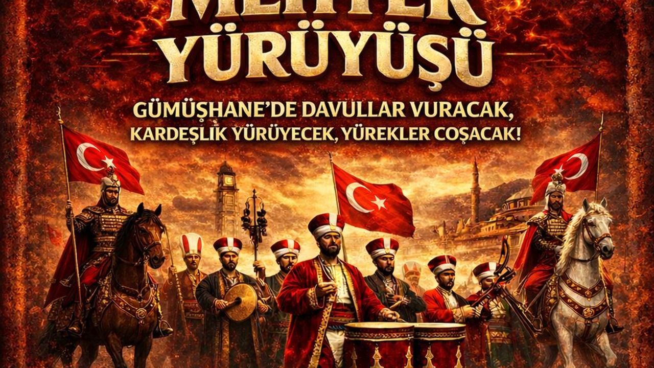 07 Mart 2026 Cumartesi günü gerçekleştirilecek olan "Mehter Yürüyüşü", Türk milletinin binlerce yıllık şanlı tarihini ve sarsılmaz kahramanlık destanlarını Gümüşhane sokaklarına taşıyacak. Vatandaşların yoğun katılım göstermesi beklenen yürüyüşte, mehter takımının eşsiz tınıları eşliğinde birlik ve beraberlik mesajları verilecek.