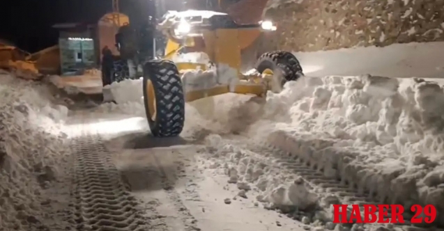 Kentin en yüksek rakımdaki köyü olan 2 bin 170 metredeki Demirören köyünde yoğun yağış ve tipi nedeniyle kapanan yolu kar kalınlığının fazla olması nedeniyle greyder ve lastik tekerlekli yükleyiciyle gece geç saatlere kadar sürdüren ekipler yolu ulaşıma açtı.