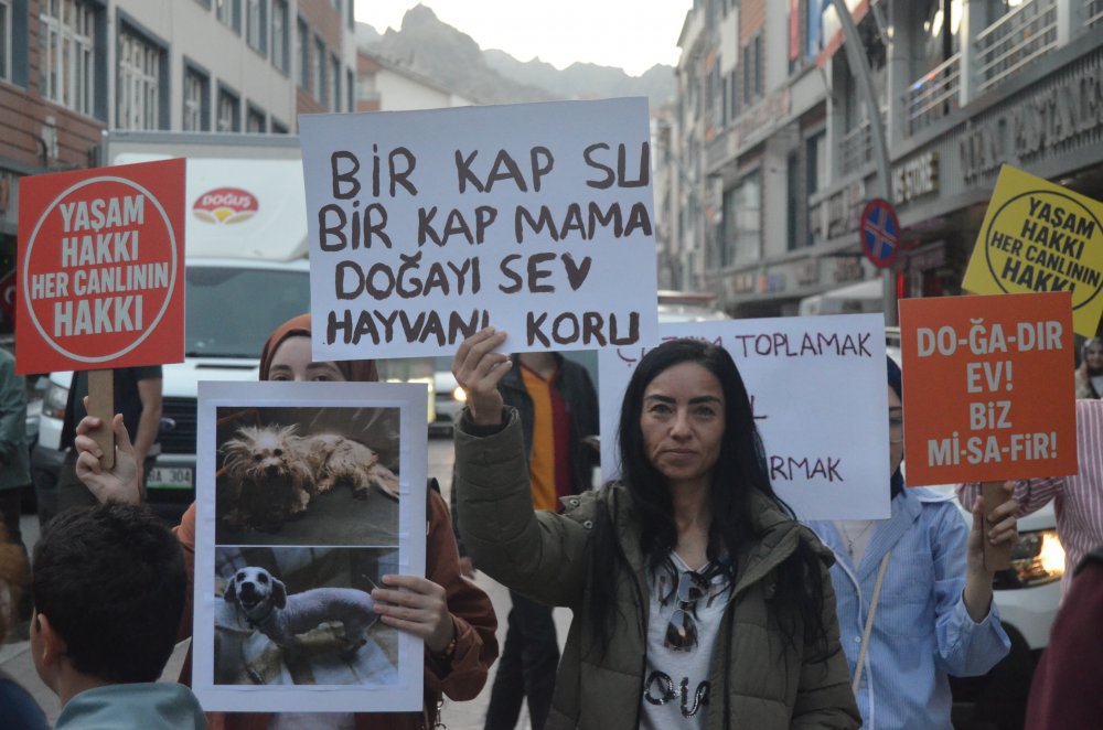 Gümüşhane’de 4 Ekim Hayvanları Koruma Günü dolayısıyla hayvanseverler, farkındalık oluşturmak amacıyla yürüyüş düzenleyip basın açıklaması yaptı.