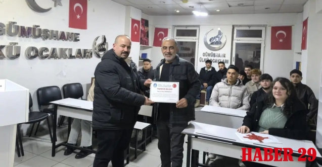 Gümüşhane Ülkü Ocakları İl Başkanlığı tarafından düzenlenen eğitim seminerlerinin konuğu, Gümüşhane Gazeteciler Cemiyeti Başkanı Sezai Köprülü oldu.