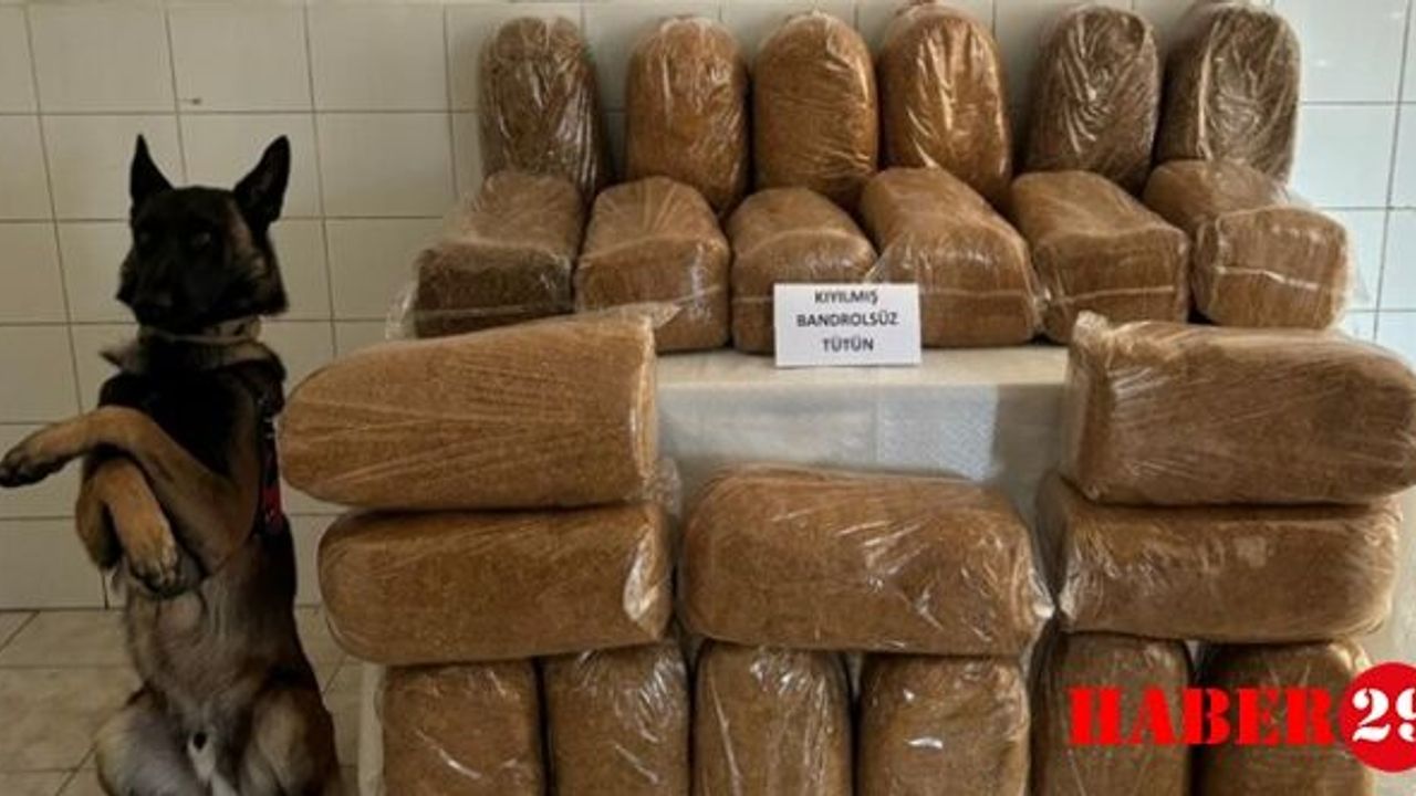 Kelkit ilçesi, Sadak-Demirözü yol ayrımında durdurulan şehirlerarası otobüsün bagajında yapılan aramada, çay ve tütün arama köpeğinin de yardımıyla piyasa değeri 124.000 TL olan bandrolsüz kıyılmış tütün ele geçirildi.
