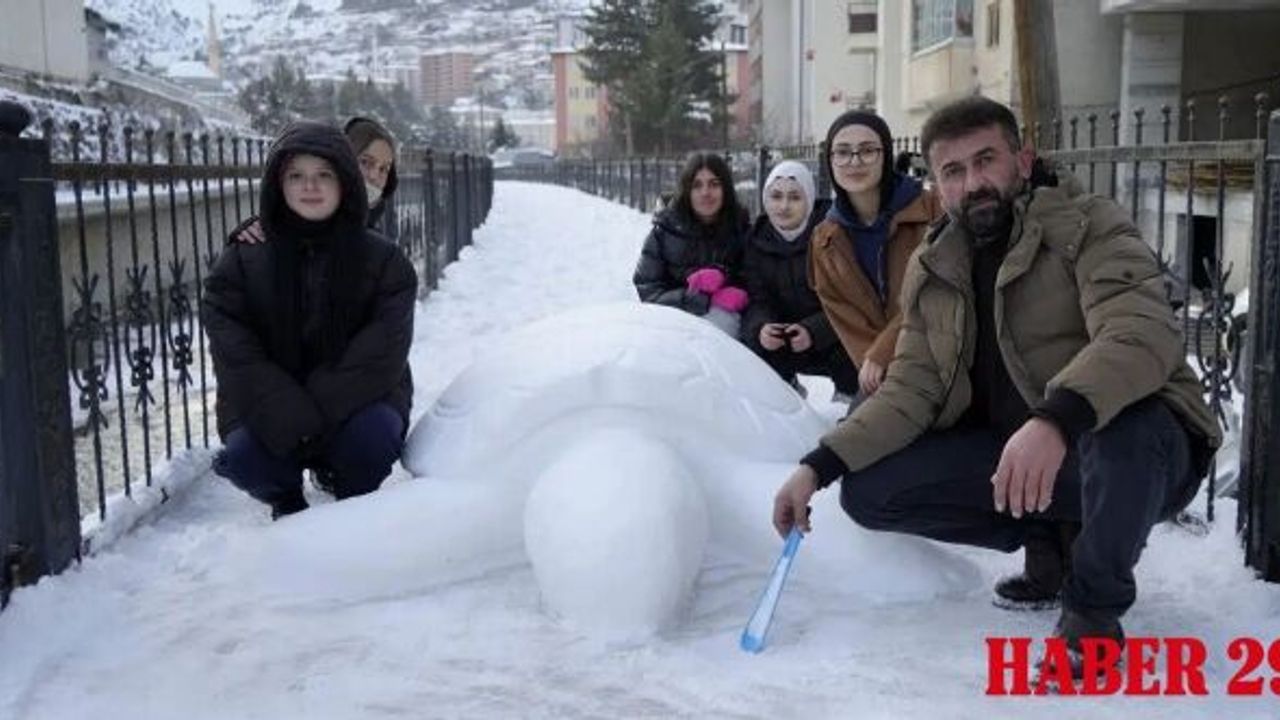“4 saatlik çalışmayla kardan kaplumbağa yaptık”