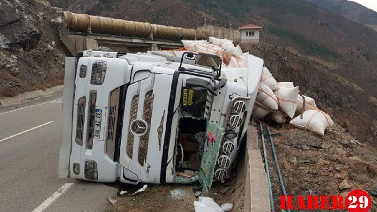 Gümüşhane-Kürtün karayolunda saman yüklü tır virajı alamayarak devrildi. Beton bariyerlere çarparak uçuruma yuvarlanmaktan kurtulan tırda bulunan 2 kişi yaralandı.