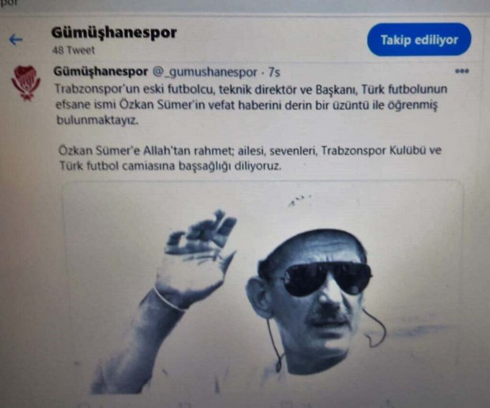 Gümüşhanespor Kulübü vefat eden Trabzonspor’un efsane ismi Özkan Sümer için başsağlığı mesajı yayınladı. Yayımlanan mesaj da şu ifadelere yer verildi: