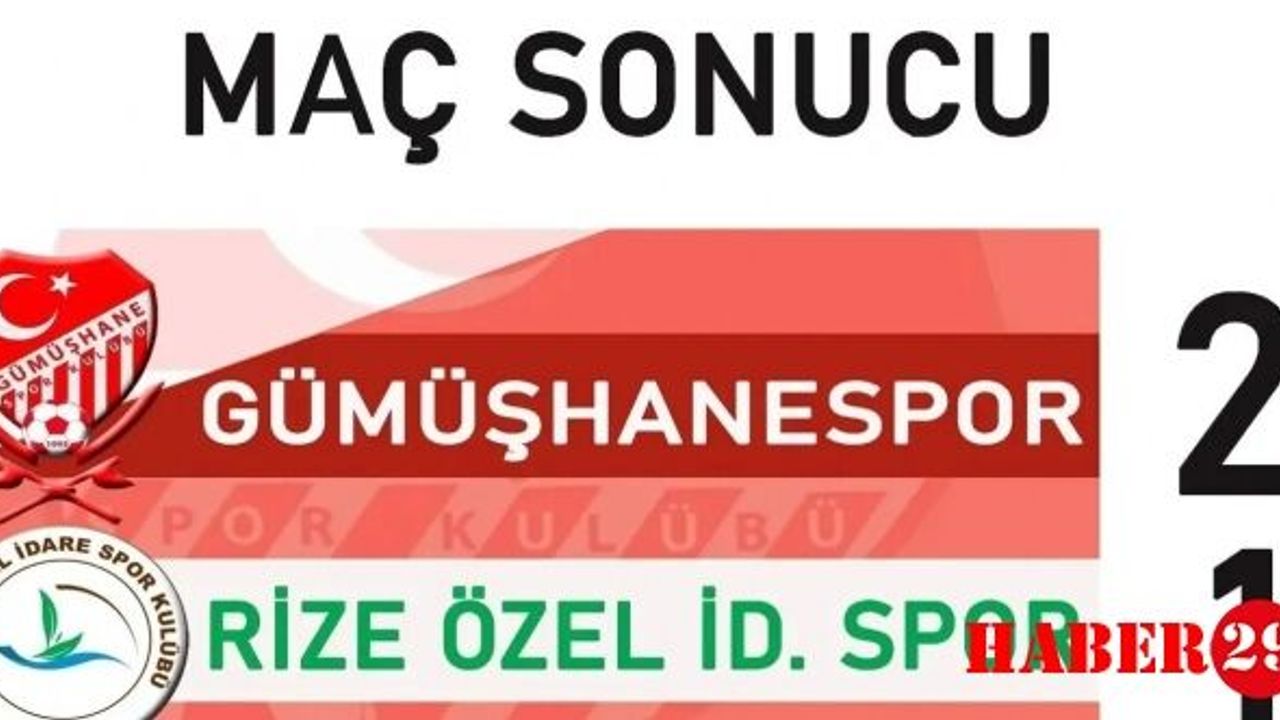 Bölgesel Amatör Lig(BAL) temsilcimiz Gümüşhanespor, geçtiğimiz hafta deplasmanda Serhat Ardahanspora karşı oynanan mücadelede sahadan  5-0’lık ağır bir mağlubiyetle ayrılmıştı. Bugün taraftarı karşısına mutlak galibiyet parolası ile çıkan kırmızı beyazlılar, Rize Özel İdarespor'u 2-1 yenerek 3 puanı hanesine yazdırdı. Temsilcimiz Gümüşhanespor, karşılaşma sonucunda Bölgesel Amatör Lig 2. grupta topladığı 16 puan ile 6. sırada yer aldı.
