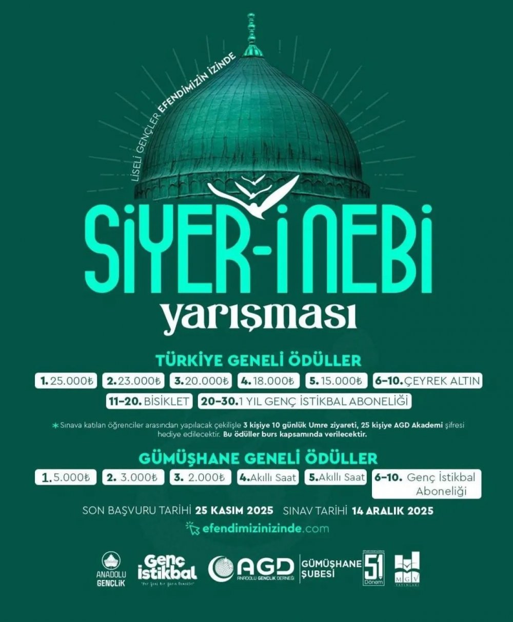 Gençlerin Hz. Muhammed’in (s.a.v.) hayatını daha iyi tanımalarını amaçlayan sınav, bu yıl da ülke genelindeki yoğun bir katılımla gerçekleştirilmesi bekleniyor.AGD tarafından yapılan açıklamaya göre, sınava katılmak isteyen öğrencilerin 25 Kasım 2025 tarihine kadar kayıt yaptırmaları gerekiyor. Online olarak ve AGD temsilciliklerinden başvuru noktalarından yapılabilen kayıt işlemleri için öğrencilerin gerekli bilgilerle başvurmaları gerekiyor.