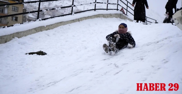 Kent merkezinde ve ilçelerde kar kalınlığının artmasıyla birlikte mahalle araları doğal birer kayak pistine dönüştü. Çocuklar, yanlarına aldıkları poşetler ve profesyonel kızaklarla dik yokuşlardan aşağı hızla kayarak adrenalin dolu anlar yaşadı.