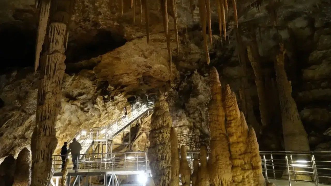 Sarkıt, dikit ve damlataşı şekilleriyle dünyada eşine az rastlanan bir görsel şölen sunan Karaca Mağarası, güvenlik çalışmalarının tamamlanmasının ardından çok daha modern ve güvenli bir ulaşım altyapısıyla yeniden kapılarını açacak.