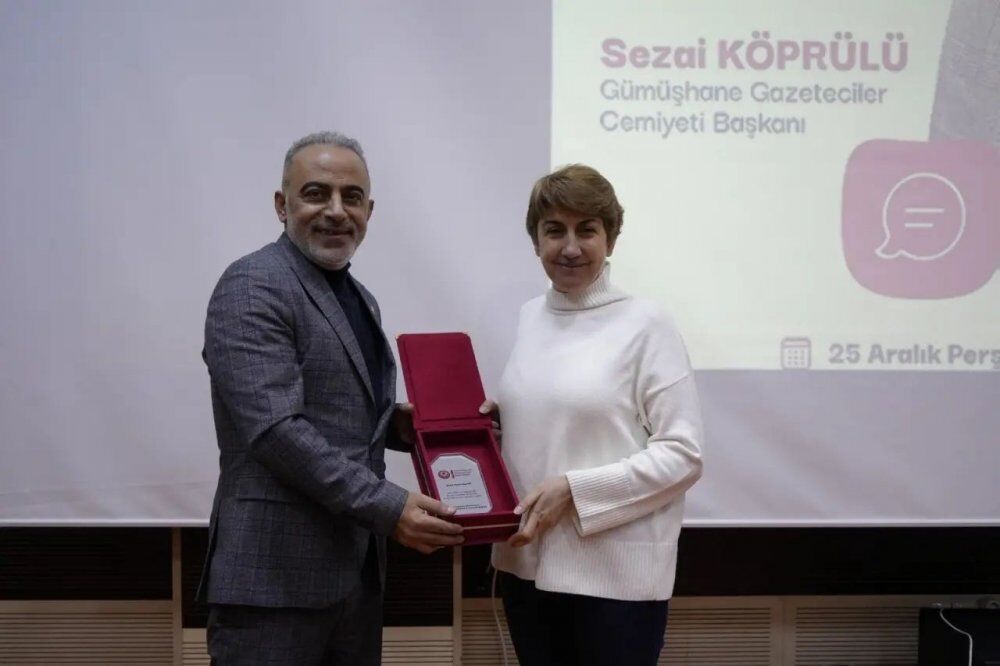 Programın kapanışında söz alan Gümüşhane Gazeteciler Cemiyeti Onursal Başkanı Yusuf Sadık ise bu tür etkinliklerin şehrin kültürel ve mesleki birikimine önemli katkılar sunduğunu söyledi. Akademik bilgi ile saha deneyiminin aynı zeminde buluşmasının Gümüşhane için büyük bir kazanım olduğunu belirten Sadık, söyleşinin düzenlenmesinde emeği geçenlere teşekkür etti.