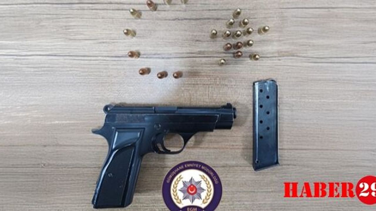 Sürücüsünün şüpheli hareketler sergilemesi üzerine yapılan üst aramasında 1 adet ruhsatsız tabanca ile 23 adet bu tabancaya ait mermi ele geçirildi.
