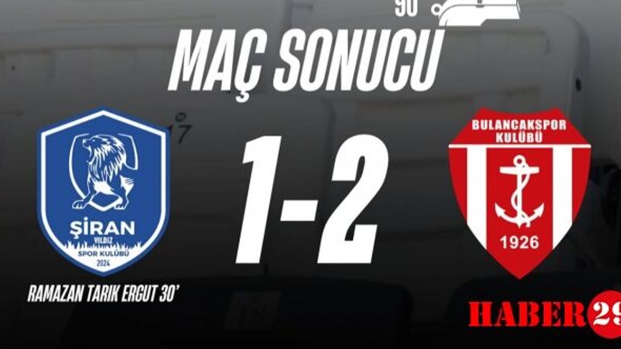 Karşılaşmaya mutlak 3 puan parolası ile çıkan temsilcimiz Şiran Yıldızpor , karşılaşmanın henüz 2. dakikasında kalesinde gördüğü şok golle lider Bulancakspor karşısında 1-0 geriye düştü. Bu golün şokunu üzerinden atmak isteyen temsilcimiz Şiran Yıldızspor kontrollü oyunuyla güçlü rakibi karşısında beraberlik için ciddi ataklarla rakip kalede gol aramaya başladı. Aradığı gölü 30. dakikada Ramazan Tarık Ergut ile bulan Mavi -Beyazlılar ilk yarının son saniyelerinde yediği golle devre arasına 2-1 yenik girdi. Karşılaşmanın ikinci yarısında da ciddi gol fırsatları yakalayan ve gol için rakip kaleye yüklenen temsilcimiz Şiran Yıldızspor aradığı golü bir türlü bulamayınca sahadan 2-1 mağlup ayrılarak şampiyonluk yolunda önemli bir kayıp yaşadı.