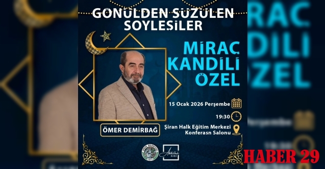 “Şiran Belediyesi Gönülden Süzülen Söyleşiler etkinliklerimiz kapsamında, 15 Ocak 2026 Perşembe günü saat 19.30’da Halk Eğitim Merkezi salonunda, sözün üstadı, gönül insanı yazar Ömer Demirbağ’ı Miraç Kandili Özel programı ile siz değerli hemşerilerimizle buluşturuyoruz. Gönülleri mest edecek bu güzel programı kaçırmayın.”