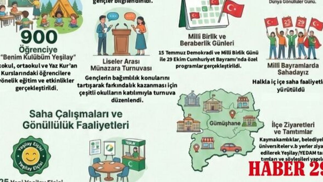 Yeşilay Gümüşhane Şubesi; yönetim kurulu, komisyonlar ve yüzlerce gönüllünün katkısıyla son bir yılda toplam 180 etkinlik gerçekleştirerek bağımlılıkla mücadelede kararlılığını sürdürmekte.